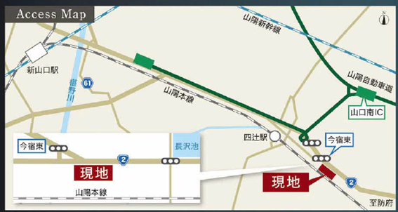 - 国道2号線沿いで、山陽自動車道山口南ICに近く交通アクセスに優れた立地。造成済。