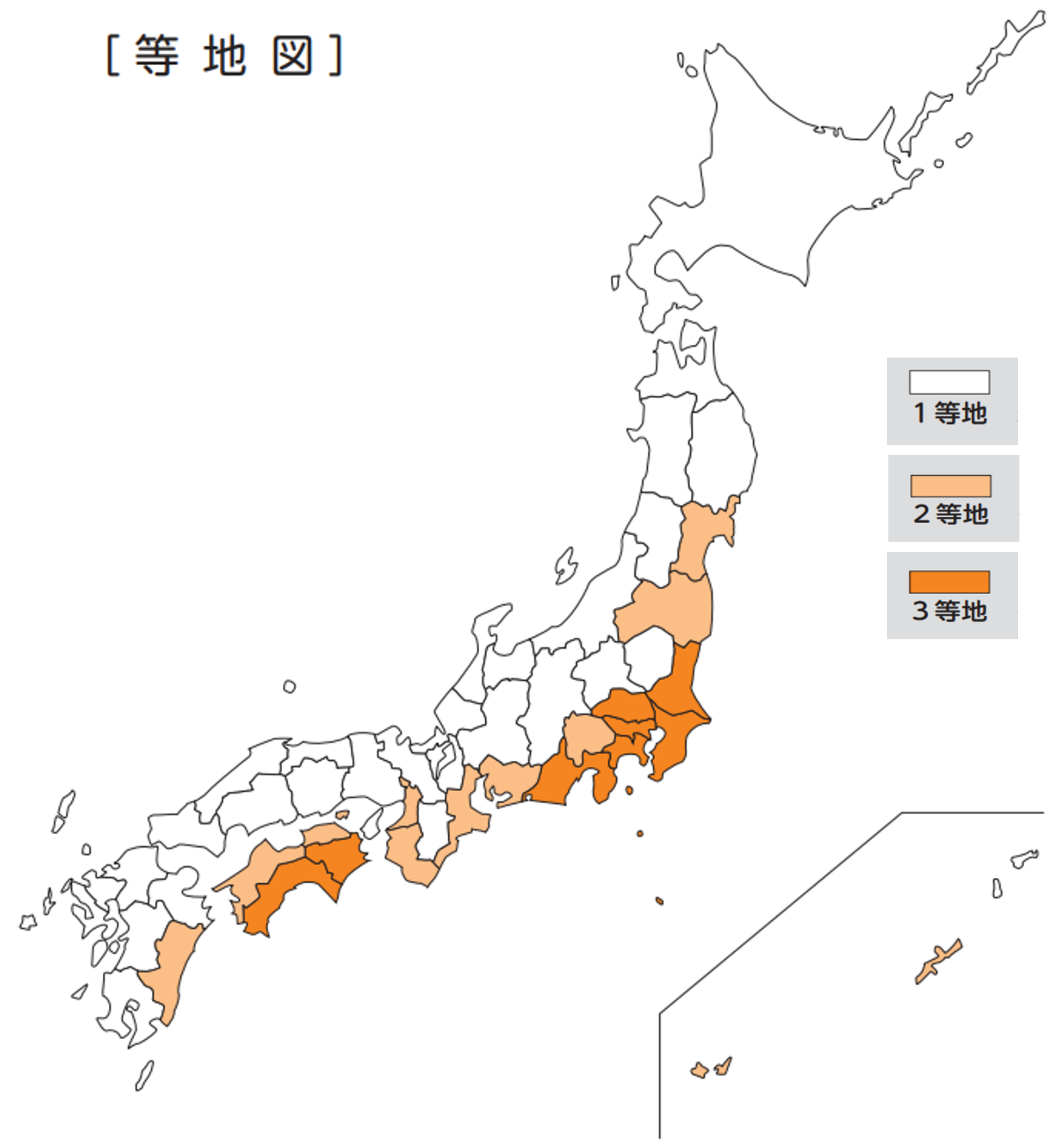 また、地震保険基準料の算定を行う「損害保険料率算出機構」の保険料のランク付け等地別で、山口県はもっとも安い1等地に区分されています。